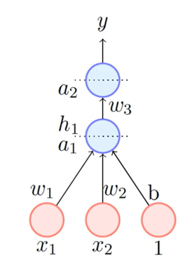 $$ \frac{\partial L}{\partial b} = \frac{\partial L}{\partial h1} \frac{\partial h1}{\partial a1} \frac{\partial a1}{\partial b} $$