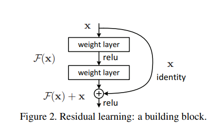 3 layer ๋ค์ feature map๊ณผ x์ shape๊ฐ ๋์ผํ ๊ฒฝ์ฐ ๋ค์๊ณผ ๊ฐ์ด skip connection ์ ์ฉ