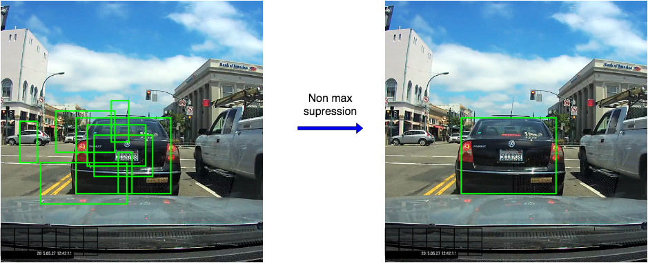 : non-max suppression์ ํ๋์ object์ ๋ํด ์ฌ๋ฌ๊ฐ์ bounding box๊ฐ ์์ธก๋๋ ๋ฌธ์ ๋ฅผ ํด๊ฒฐํ๊ธฐ ์ํ ๋ฐฉ๋ฒ์ด๋ค.