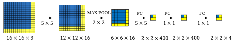 input image(16*16*3)์ ํ๋์ ๋ถ๋ถ์ด ์ฌ๋ฌ๊ฐ์ conv layer๋ฅผ ์ง๋๋ฉด output(2*2*4)์ ํ๋์ ๋ค๋ชจ ํ ์นธ์ ๋์๋๋ค.
