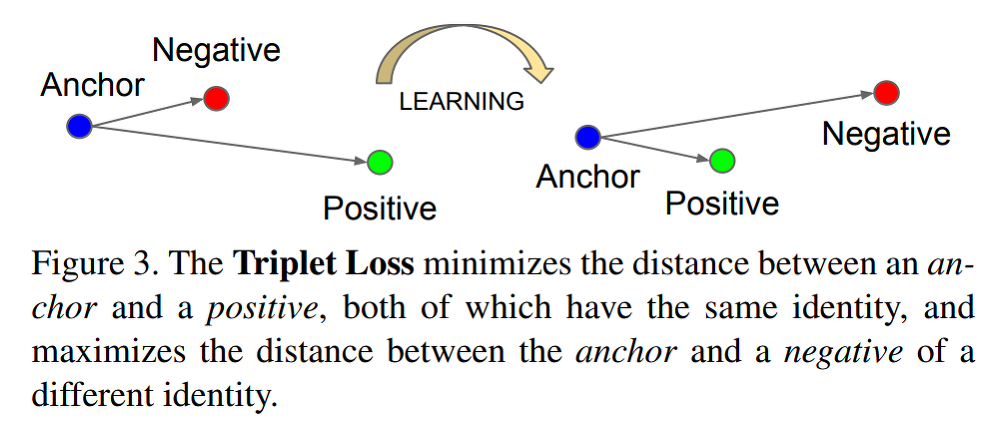 $$ L(A, P, N) = max(||f(A)-f(P)||^2 - ||f(A)-f(N)||^2 + \alpha, 0) $$